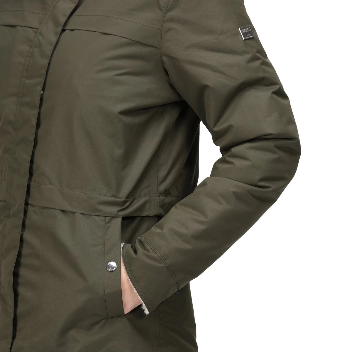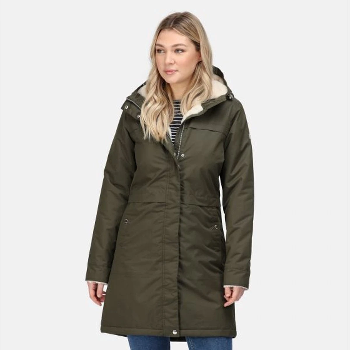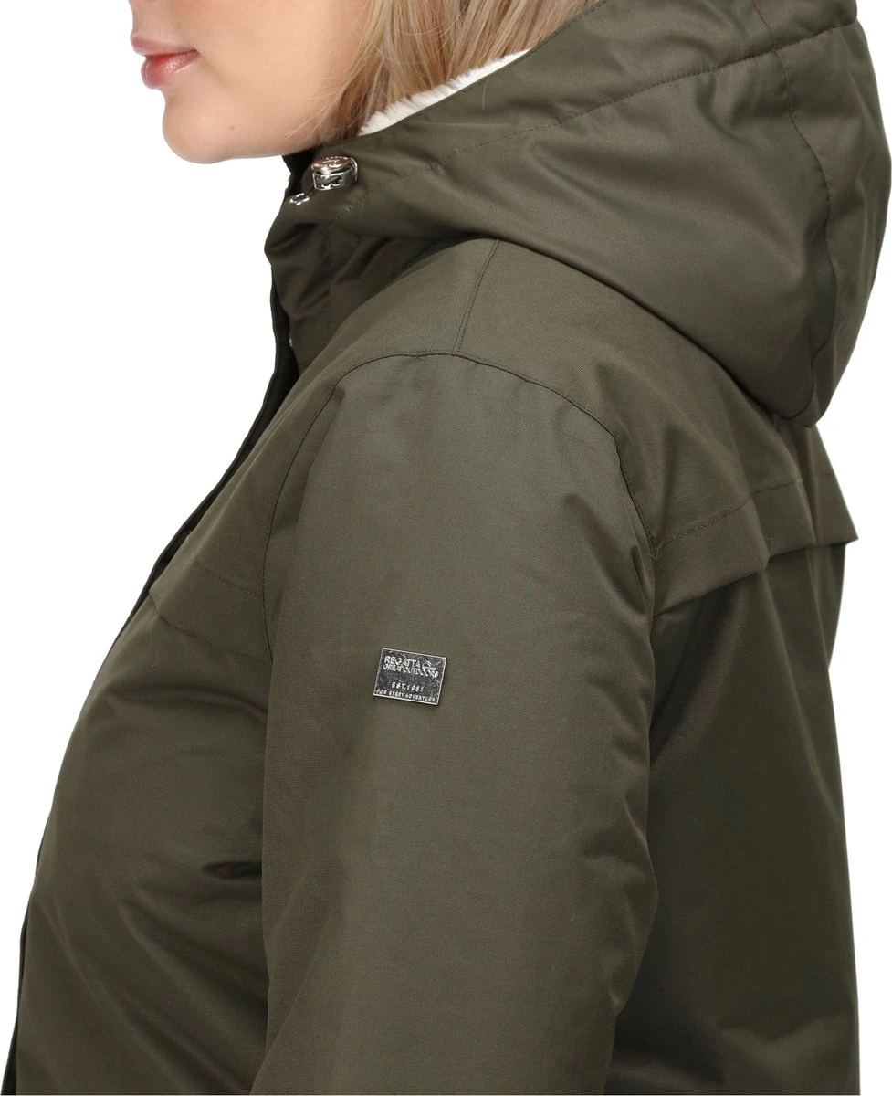 De Remina van Regatta. Reis ‘s winters iedere dag in stijl van en naar het werk. De jas voor dames heeft een waterafstotende afwerking en warme isolatie om u heerlijk warm te houden. De winterjas is daarnaast ook ademend zodat u langdurig fris blijft. De capuchon en de omvouwbare manchetten hebben een rand van luxe imitatiebont.
