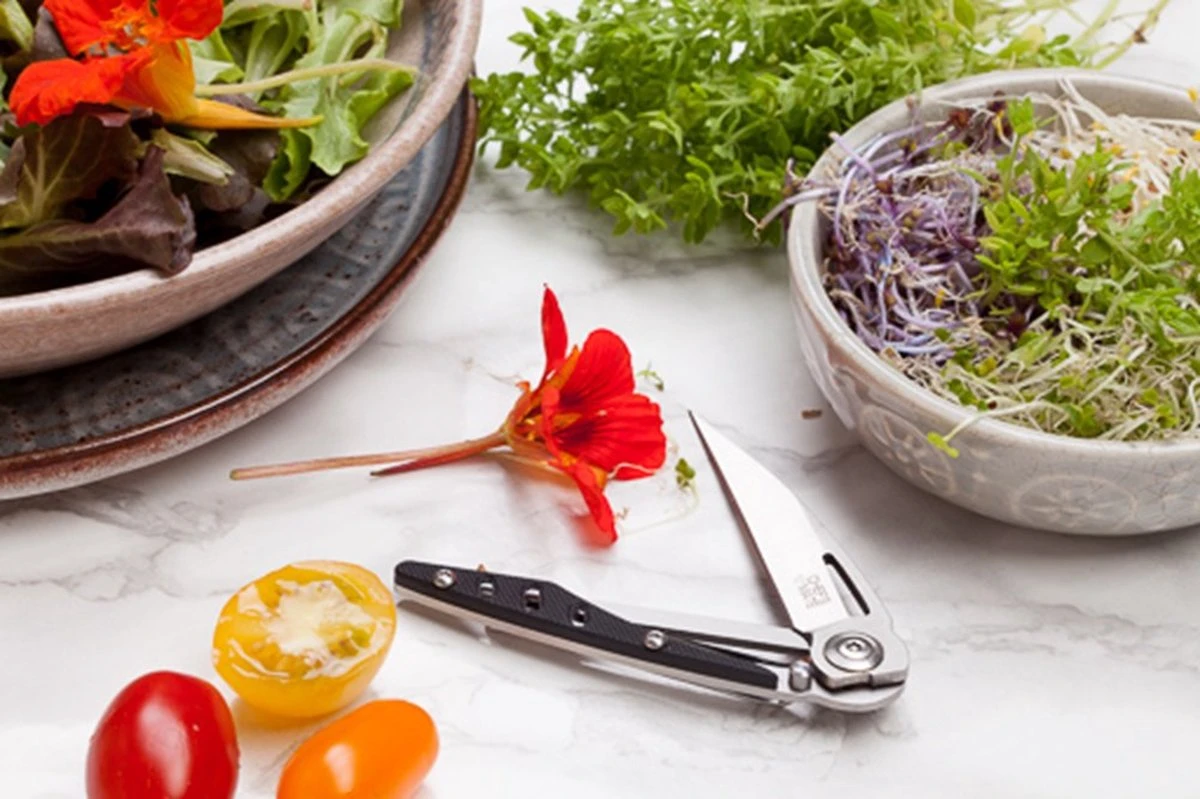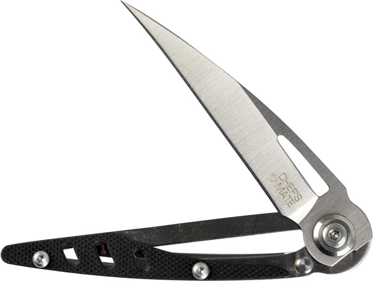 Koks zijn gek op messen, dat is een feit! Maar een zakmes voor de chef? Jazeker! Chef’s Mate is jouw koksmaatje in de keuken en draag je altijd bij je. Het afsnijden van cressen en kruiden, zowel in de keuken, kruidentuin of natuur gaat makkelijk met Chef’s Mate. Ook is het mes ideaal bij het opensnijden van vacuümzakken en verpakkingen. Met zijn 32 gram is Chef’s Mate een lichtgewicht tool om altijd met je mee te dragen in het mouw- of borstzakje van de koksbuis. Het spearpoint lemmet is ook uitermate geschikt voor het doseren van specerijen (een mespuntje van..).