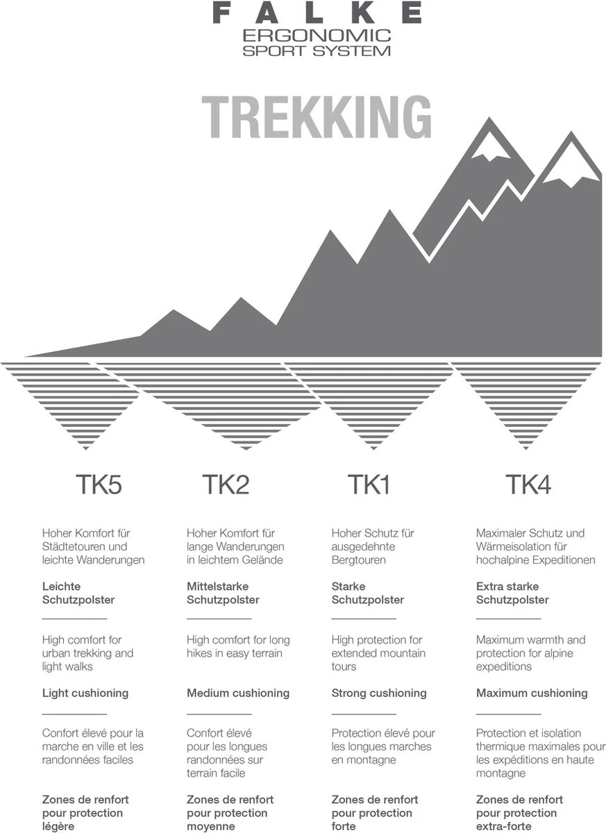 - De versterkte, ademende en hoogwaardige thermosokken van aangenaam zachte wol zonder motief zorgen voor een aangenaam, verkoelend gevoel tijdens het wandelen. Wandelsok van FALKE voor lange wandelingen in gemakkelijk terrein.