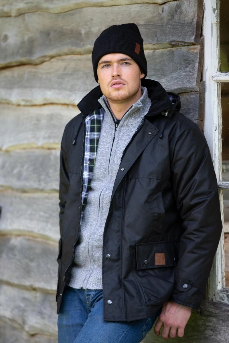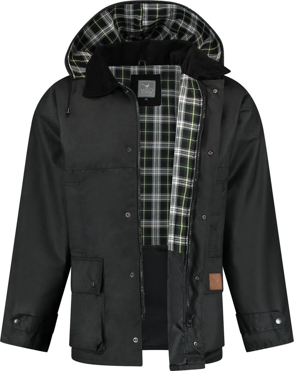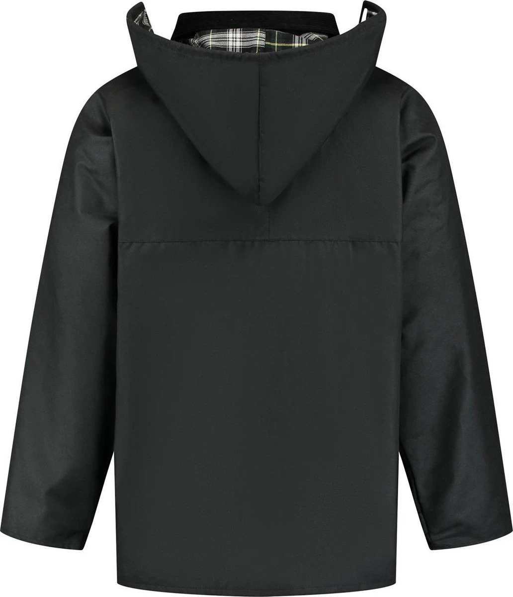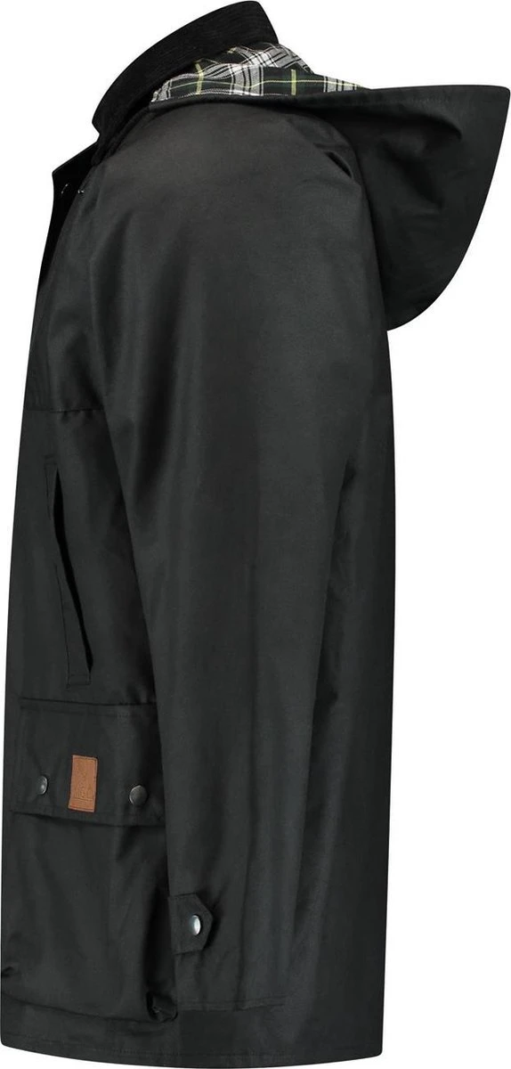 Deze waxjas is een van onze bestsellers. Hij valt ruim waardoor u er met gemak nog een warme trui of bodywarmer onder kunt dragen. (neem bij twijfel een maat kleiner of check onze maattabel) Deze waxjas is voorzien van een binnenzak, windstoppers en een afneembare capuchon d.m.v. drukknopen. Hij is winddicht, waterafstotend en warm gevoerd. Verkrijgbaar in zwart, groen en donkerblauw.